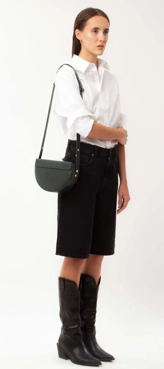 Le Nuit is Audette's flagship model. Shaped with a rigid structure and a magnetic flap to ease its opening, it is the ideal handbag for your essentials during the day or night. Its adjustable strap with snaps allows five different positions so you can carry it by hand, over the shoulder or cross body, as you desire. There is enough space for your phone, wallet, make up and other essentials on its half-moon body. Handcrafted in Spain.